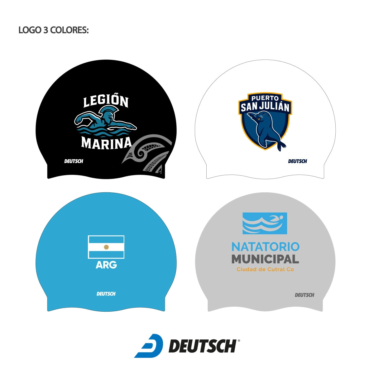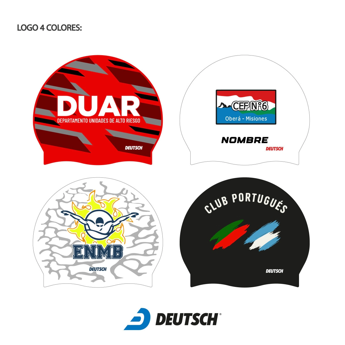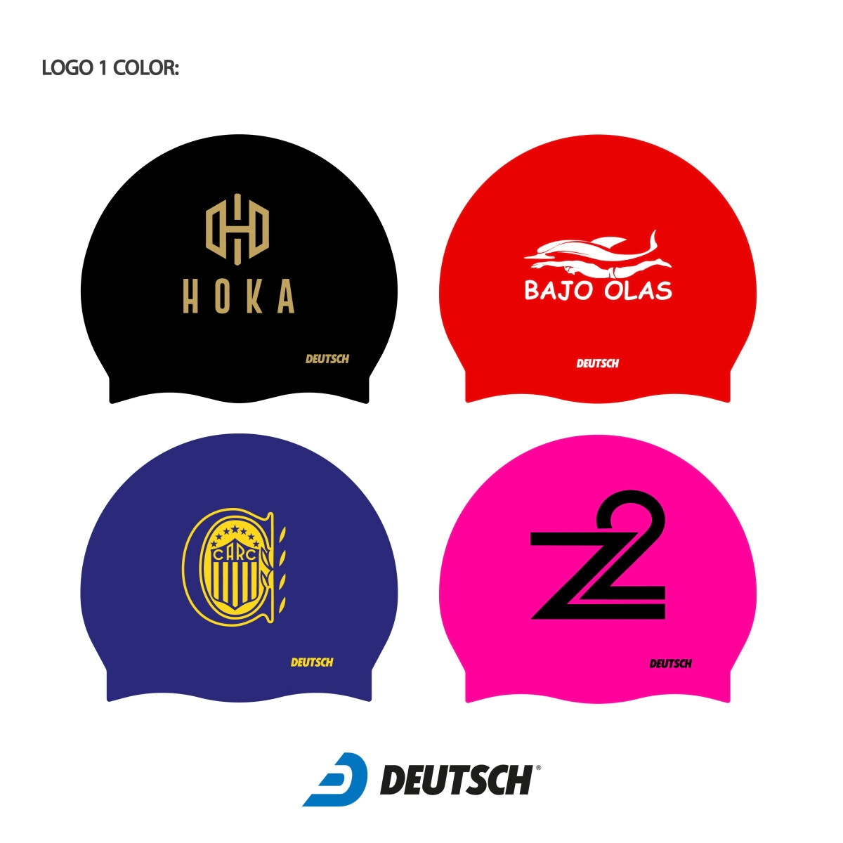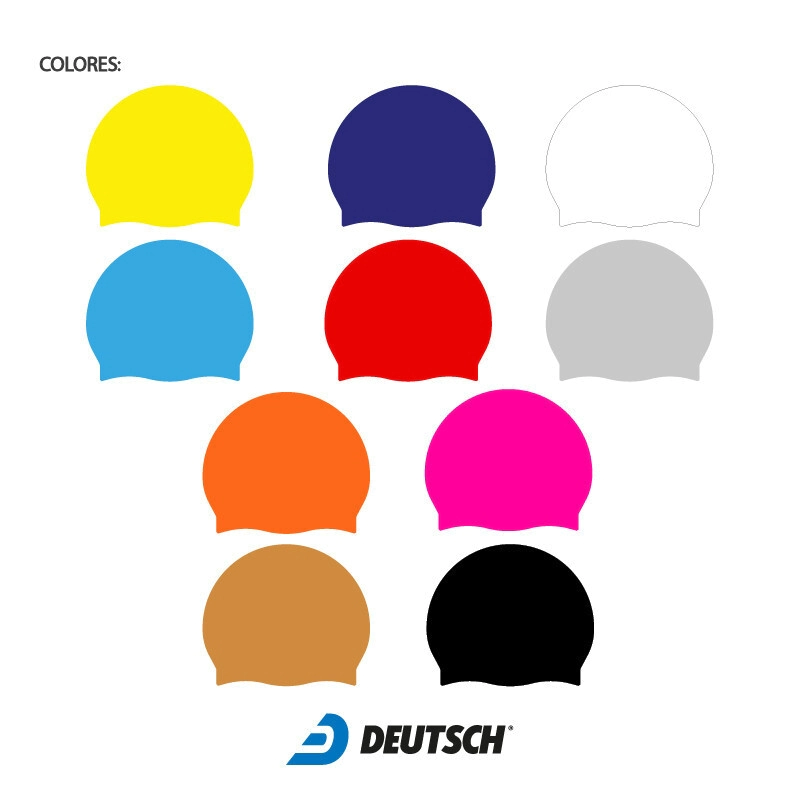 Gorra de silicona para natación personalizadas. Minimo 25 unidades. El color de la gorra es a elección según el stock disponible. Se le puede imprimir un logo a 4 colores como maximo, de cada lado, puede ser igual o distinto, a su vez se le puede agregar el apellido del nadador/a a cada gorro (estas ultimas dos opciones conllevan un costo extra).