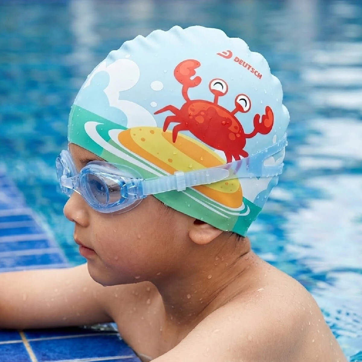 La gorra de natación infantil Deutsch está diseñada especialmente para los más chicos. Fabricada en silicona de alta calidad, brinda un ajuste cómodo y seguro, evitando la entrada de agua en el cabello y protegiendo contra el cloro de la pileta.