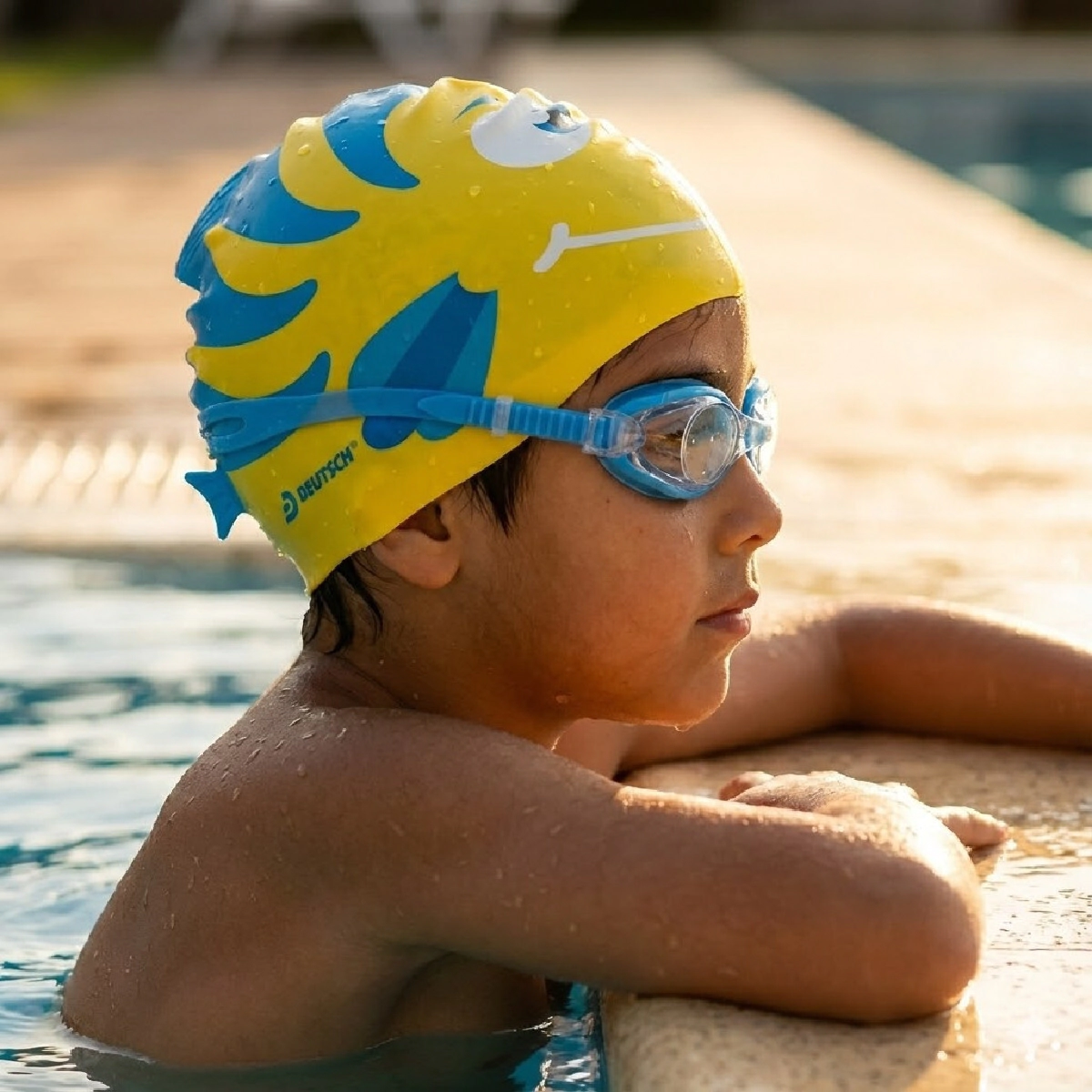La gorra de natación infantil Deutsch, recomendada para nenes y nenas de 3 a 6 años, combina comodidad, protección y un diseño súper divertido con forma de pez.