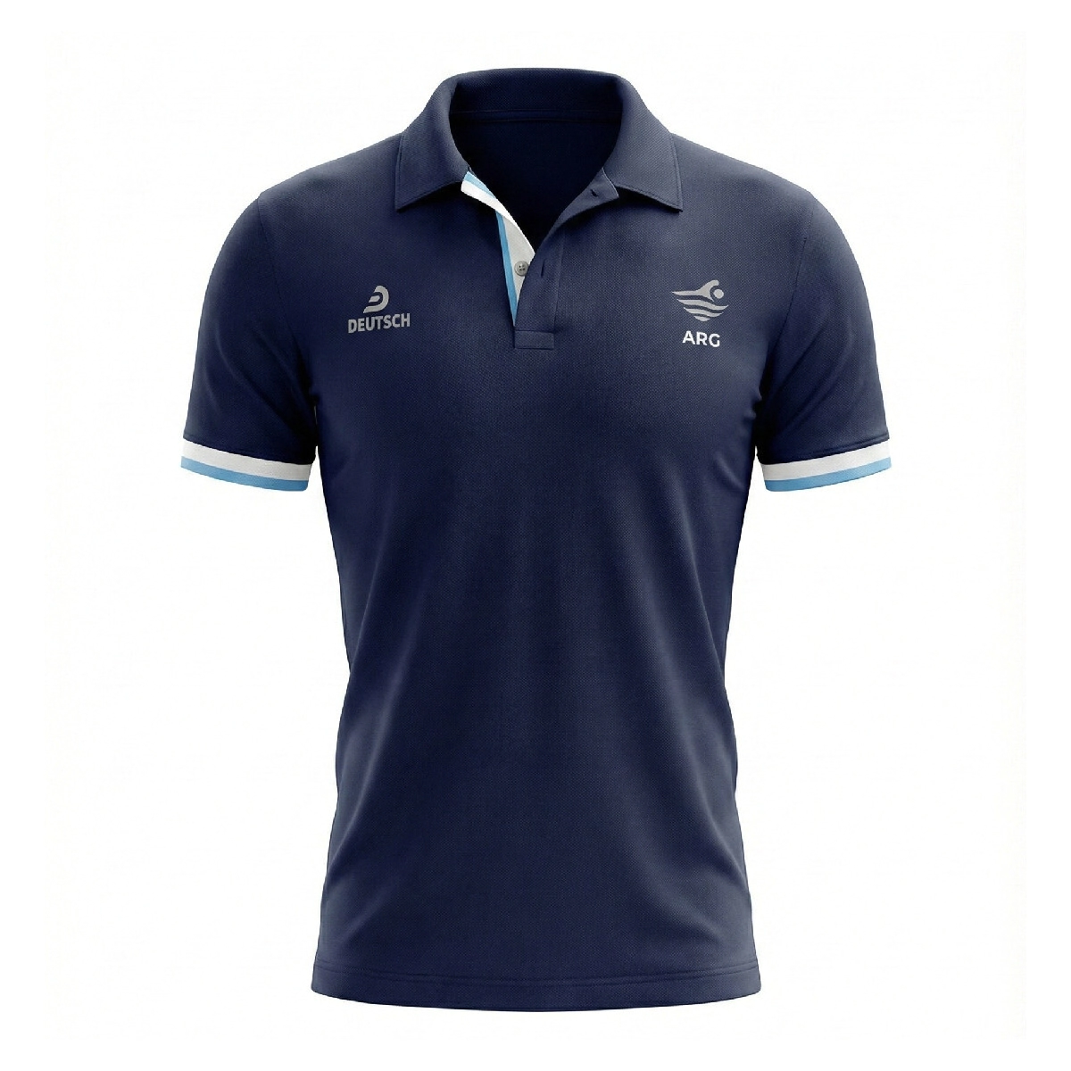 Su diseño en color azul marino, con detalles celestes en cuello y mangas, incorpora el logo Deutsch y el emblema ARG Natación, logrando una prenda elegante y deportiva a la vez. Ideal para entrenadores, nadadores, clubes o fanáticos del deporte argentino.